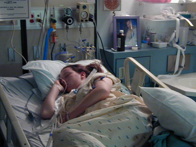 Hannah sleeping in ICU